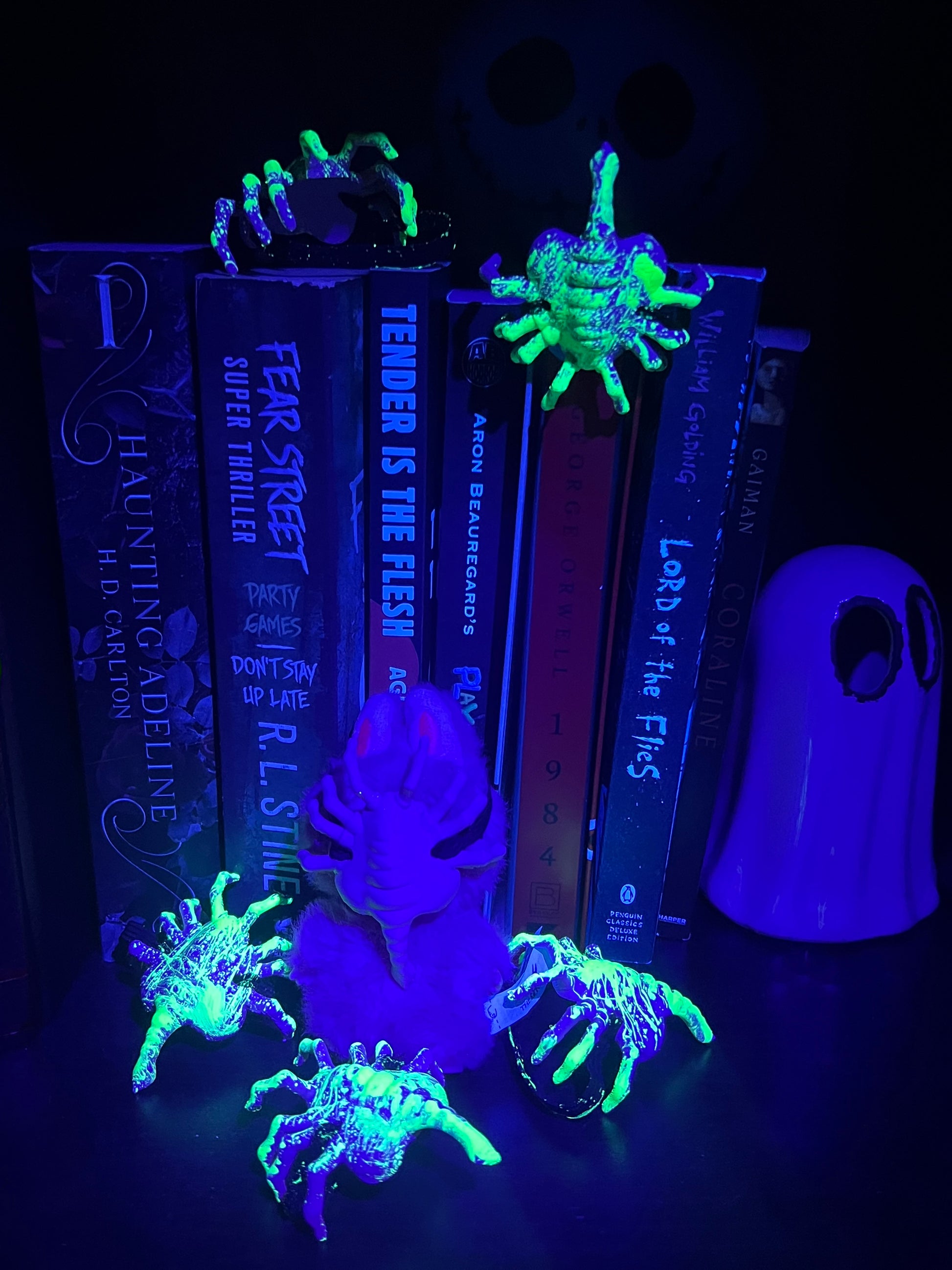 green goo will be like the photos and each green goo splatter will vary with each different face hugger